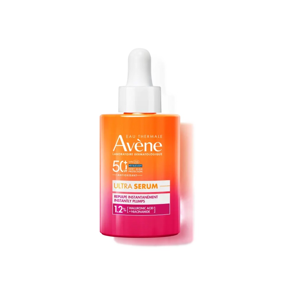 Avène Ultra Serum SPF 50+ Instant Plumping 30ml is a daily facial sunscreen serum with very high protection. It is formulated to help protect the skin against UVB, UVA, and HEV blue light, while contributing to plumping, redensifying, and firming the skin. It also helps prevent photoaging and reduce the appearance of wrinkles.