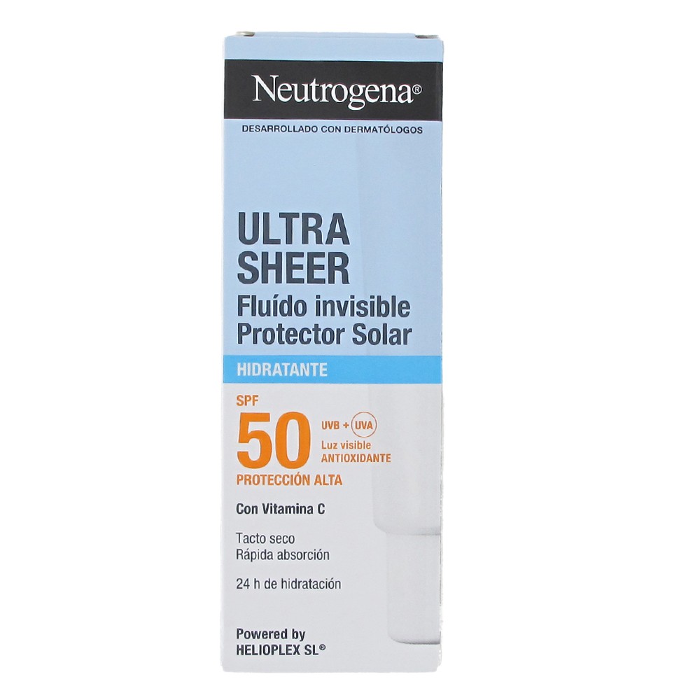 Neutrogena Ultra Sheer Fluid SPF 50 Moisturizing 50ml is a very high protection facial sunscreen designed to protect the skin from UVA and UVB rays while providing continuous hydration for 24 hours. It incorporates Powered by Helioplex® technology, which helps improve the stability and effectiveness of the sun filters.